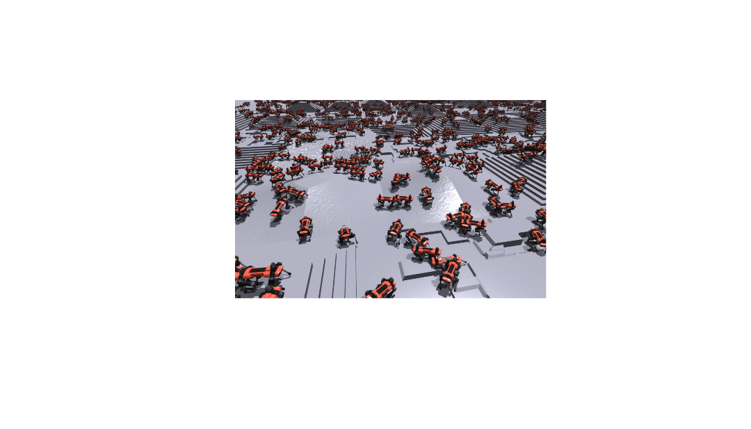 是nvidia用于强化学习研究的物理模拟环境,通过GPU加速的tensor API可以评估环境和施加动作,支持常见机器人的位置、速度、力和力矩的传感。目前已经实现支持的机器人有无人机、机械手、机械臂、人形机器人和四足机器人等。