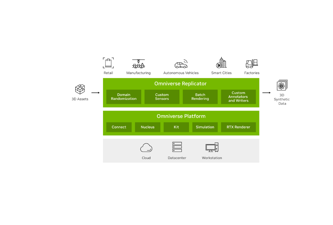 Omniverse Replicator (https://developer.nvidia.com/omniverse/replicator) 是 Omniverse 平台的核心扩展,使研究人员和企业开发人员能够生成物理上准确的合成数据,并轻松构建自定义合成数据生成 (SDG) 工具,以加速计算机视觉 AI 模型和网络的训练。