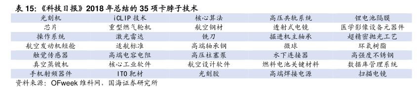 35项中国卡脖子技术(科技日报2018年)